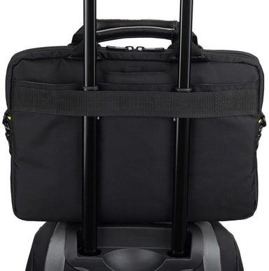Targus City Gear har et casual design og smart organiseringssystem. Computertasken har plads til bærbar PC, 2-i-1 PC’er eller ultrabooks fra 12” til 14” samt tilbehør, skriveredskaber og personlige ejendele. Lommerne har lynlås, så du er sikret optimal opbevaring og hurtig tilgang til dine ting. Den aftagelige og justerbare skulderrem sikrer ergonomisk brug, mens håndtagene i toppen har ekstra polstring for god komfort. Takket være remmen til trolley, kan du fæste computertasken til din trolley.