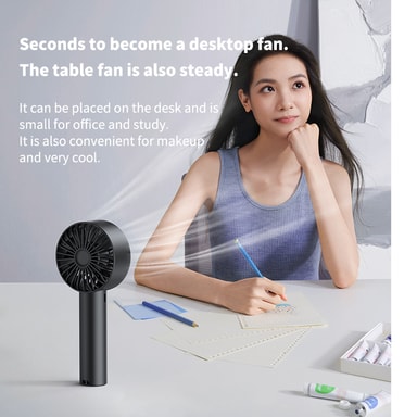 Kraftig & justerbar: Denne håndholdte ventilator er udstyret med en højtydende motor og leverer en forfriskende brise med 5 justerbare hastighedsindstillinger. Vælg mellem en mild luftstrøm til en kraftig vindstød, der passer til dine præferencer og den omgivende temperatur.