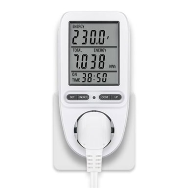 Denne energimåler er ideel til at overvåge husholdningsapparaters energiforbrug.