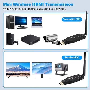 Trådløs HDMI-forlænger: Spejl bærbare, PC, mobiltelefoner til TV, skærm eller projektor