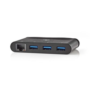 Denne bærbare USB-C til USB 3.0-hub med 4 porte med Gigabit Ethernet-port kan bruges sammen med enhver enhed med en USB-C-port. Den understøtter USB 3.0 ved særlig høj hastighed (5 Gbps)