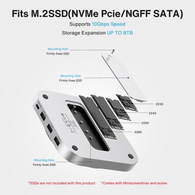 Op til 8 TB SSD-lagring: Fleksibel NVMe SSD-installation giver professionel lagring direkte i docken