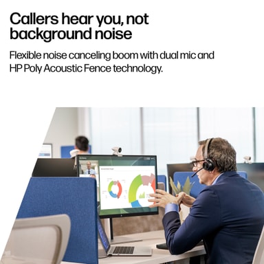 Hør dine kollegaer med klarhed takket være de store 32mm drivers, som producerer en kraftfuld lyd. Mikrofonen sikrer at du bliver hørt uden distraktioner takket være Acoustic Fence-teknologi, som reducerer baggrundsstøj og samtaler.