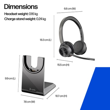 • HP Poly Voyager 4320 MS Teams headset USB-A kabel med oplade-stander
