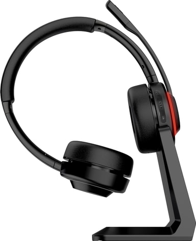 Skrivebordsocken fungerer som et permanent "hjem" for headsettet, holder skrivebordet ryddeligt og sikrer, at enheden altid er opladet til næste opkald.