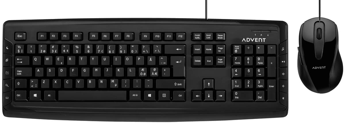 Her får du en Advent optisk mus og et tastatur i fuld størrelse med 10 multimedietaster til nem betjening af multimediefunktioner.Læs mere om produktet