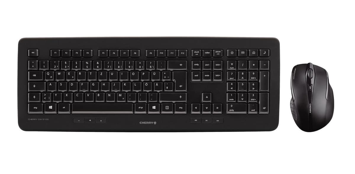 Cherry DW 5100 - Kit med mus og trådløst tastatur fra Cherry med LPK -switch, USB nano -modtager, nordisk layout, sort