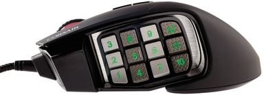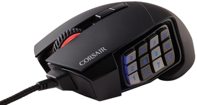 Bliv kongen af MOBA-spil med denne Corsair Scimitar Pro gaming mus. En ultrapræcis 16.000 DPI optisk sensor, flytbart tommelfingerpanel med 12 knapper, Key Slider og 1 ms responstid baner vejen for din succes.Læs mere om produktet