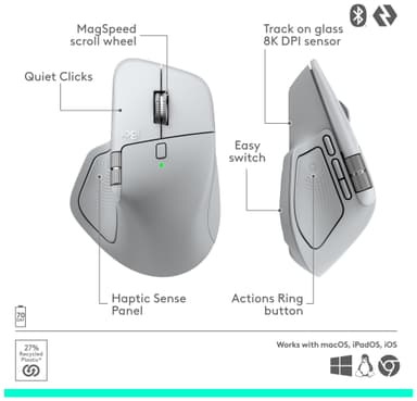 Logitech MX Master 4 til Mac tilbyder tilpasselig haptisk feedback, Action Ring-genveje, et ergonomisk design, pålidelig forbindelse og op mod 70 dages batterilevetid.Læs mere om produktet