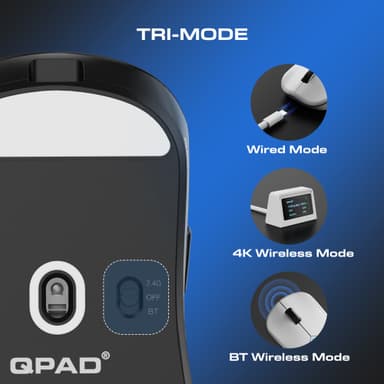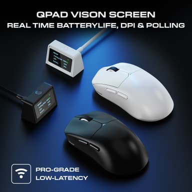 Denne QPAD Mark Model 3 Vision trådløse mus har et ambidextrøst design med en justerbar DPI på op til 26.000, en PAW 3395-sensor, tre tilslutningstilstande, en polling rate på 4.000 Hz og en Vision-skærm, der viser forskellige indstillinger i realtid.Læs mere om produktet