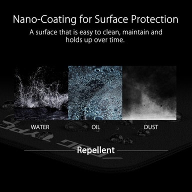 Asus ROG Hone Ace XXL musemåtte giver en perfekt balance mellem glat glid og modstand for din mus, skridsikker gummibund, og den afviser vand, olie og støv, så den forbliver ren. Den er bordbred, 40 x 90 cm, så du aldrig kommer til at mangle plads.