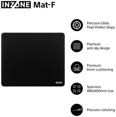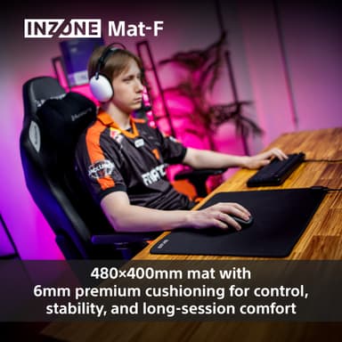 Sony INZONE Mat-F L musemåtten har en stor, struktureret overflade med SlimFlex-base. Den er skabt i samarbejde med med Fnatic og har en skridsikker bagside samt kanter med anti-flosning.Læs mere om produktet