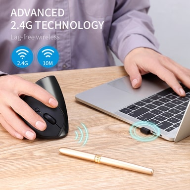 Denne trådløse computermus har et ergonomisk design, der giver din hånd mulighed for at hvile i en normal rystende håndstilling, hvilket letter bevægelser. En almindelig computermus får hånden til at ende i en lidt usædvanlig position, og i lang tid kan den føles ubehagelig. Det laver ingen lyd, men klikker roligt, så du ikke forstyrrer dig selv eller andre. Opløsningen er justerbar og går op til 1600 DPI, så du får en computermus, der er følsom og reagerer hurtigt. Computermusen har et indbygget genopladeligt batteri, der let oplades med et USB-kabel, så du behøver ikke at tænke på nogen ekstra batterier.