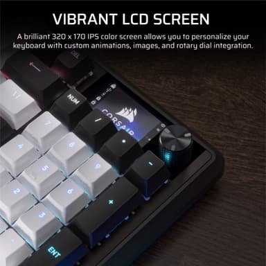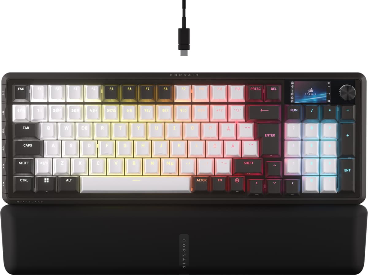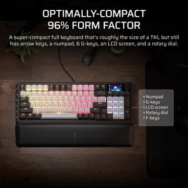 Corsair Vanguard 96 tastaturet er en alsidig og kraftfuld løsning, som er udstyret med MLX Hall Effect-switches, USB-C tilslutning, en specialdesignet LCD-skærm, 8k polling-hastighed, FlashTap SOCD og RGB-belysning for hver tast.Læs mere om produktet