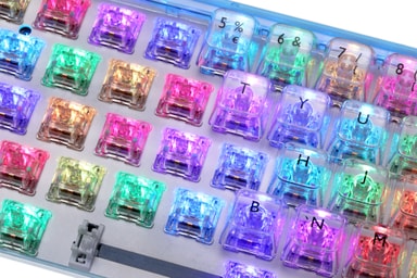 Download den officielle Deltaco-app, og tilpas de mere end 16 millioner farver til brugerdefinerede profiler, som du kan skifte mellem ved at trykke på en knap. Den gennemsigtige natur får tasterne til at skinne endnu klarere end normalt, så du kan ændre farverne på både tasterne og siderne af tastaturet.