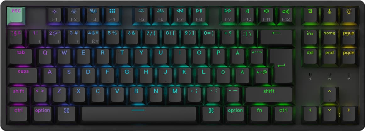 Dette Keychron K8 HE trådløse gaming-tastatur er et alsidigt gaming-kraftcenter, der har Gateron double-rail 2.0 Purple magnetiske switches, tri-mode forbindelse, et kompakt 80% formfaktor og premium aluminium-design til gaming og produktivitet.Læs mere om produktet