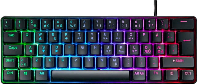 NOS K-200 Mini CORE RPG gaming tastaturet hjælper dig med at spare på pladsen på dit skrivebord uden at begrænse din gamingydelse. Den har membranswitch, 19-keys anti-ghosting, og takket være dens layout og dens snævre rammer fylder det kun 60% af et almindeligt tastatur, så det er ideelt at have med på farten. Og den er udstyret med RGB-belysning med 9 indbyggede presets med justerbar hastighed.