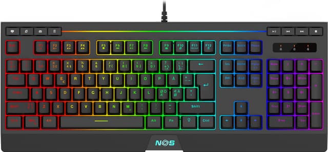 Med dette NOS K-400 CORE LED gaming tastatur kommer du helt til tops i dine spil og i flot stil. Det er forsynet med 8 hotkeys, et Fn-lag til multimediestyring og 19 key anti-ghosting-funktion samt stilfuldt multifarvet LED-bagbelysning.