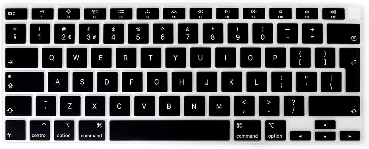 Perfekt pasform: Den beskyttende folie af miljøvenlig silikone passer perfekt til hver knap takket være det individuelle design med sorte taster (engelsk sæt).