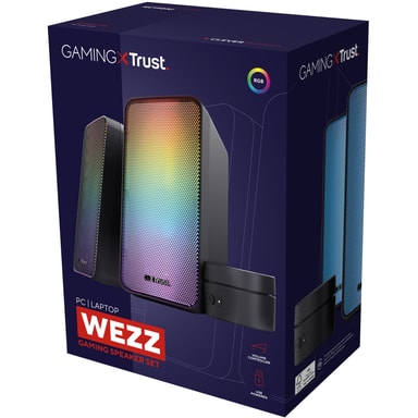 GXT 611 Wezz højttalersættet har RGB LED-belysning med forskellige lystilstande, der reagerer på rytmen i din musik.