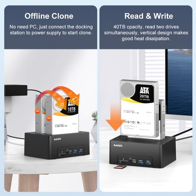 Maiwo USB3.1 Dockingstation kombinerer hurtig harddiskkloning med alsidig tilslutning. Den understøtter både 2,5" og 3,5" SATA HDD/SSD og kan bruges som en offline-klon eller ekstern dockingstation. Med integrerede forbindelser som HDMI, USB, LAN og kortlæser er dette den ultimative løsning til databehandling og arbejdsstationer.Specifikationer: