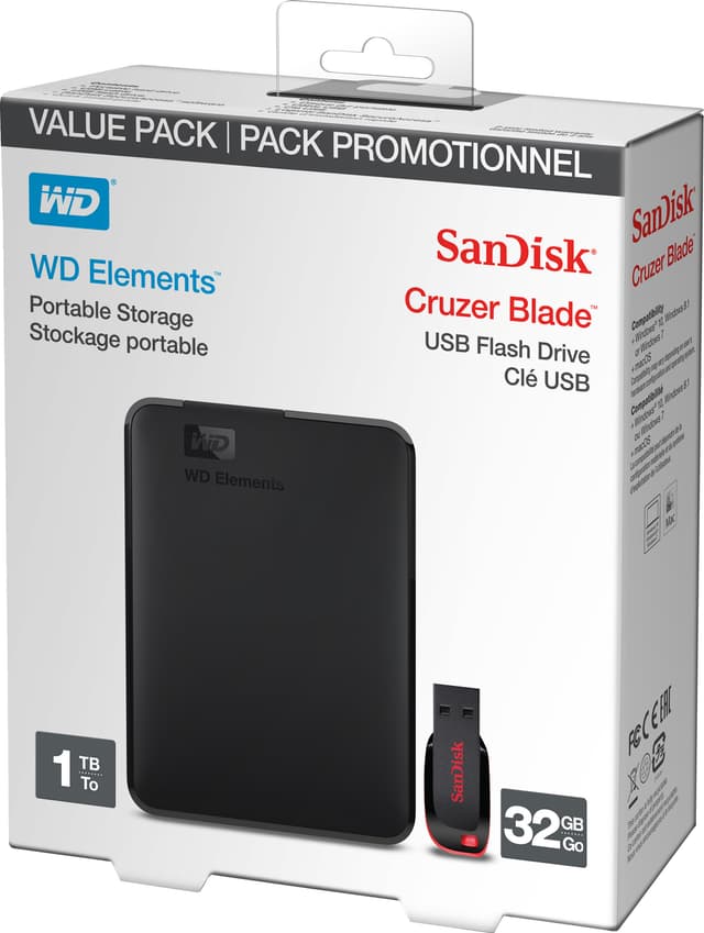 • WD Elements 1 TB ekstern harddisk + 32 GB USB