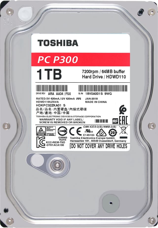 Den interne Toshiba P300 interne harddisk er velegnet til hjemmeopsætninger og forbindes gennem SATA 3 for hurtig filoverførsel. Du kan let lagre store mængder filer som billeder og videoer på harddisken.