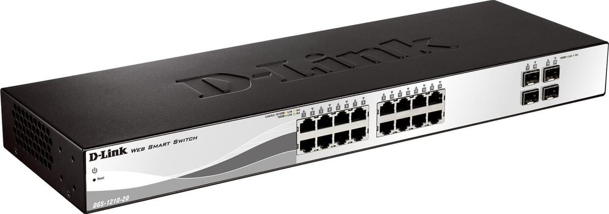 D-Link netværksswitch, Layer 2, 10/100/1000Mbps, 16xRJ45, 4xSFP, meta