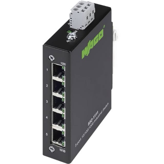 Den 852-1111 er en industriel ETHERNET-switch med 5 1000Base-T-porte, autonegotiation og auto-MDI/MDI-X-registrering på hver port. Takket være de fem porte på switchen kan der dannes flere segmenter til reduktion af netværksoverbelastningen og hver brugerknude kan få sin egen båndbredde. Den 852-1111 er en prisbillig løsning, så du på den voksende efterspørgsel efter IP-baseret, industriel kommunikation at kunne reagere. Switchen kan nemt konfigurere og installere og er især velegnet til små og mellemstore netværk. Egenskaber: 5-ethernet-porte 10/100/1000 Mbps autonegotiation · Diagnose-LED'er på forsiden · Understøtter Auto-MDI/MDI-X-funktioner · Halv- eller helduplex-overførselstilstand pr. port · Store-and-Forward-Switching-metode · Integreret Address Look-Up-Tabelle, understøtter op til 8000 absolutte · MAC-adresser · Overspændingsbeskyttelse · IEEE 802.3x flow-styring i fuld duplex-drift · Til bæreskinne DIN 35 OBS! Denne produkttekst er maskinoversat. OBS! Denne produktbeskrivelse er endnu ikke blevet oversat til dansk af vores oversættere. Derfor er teksten maskineoversat fra den tyske originaltekst.