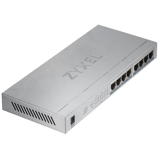 Zyxel GS1008 8-port switchen er en pålidelig makker til ethvert PoE-netværk. Hver Gigabit IEEE 802.3at port yder 30 watt og et totalt strømbudget på 60 watt. Switchen har et slidstærkt metalkabinet og stille, blæserløs drift, der især gør den velegnet til mindre kontorer.