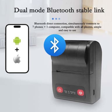 Trådløs Bluetooth-udskrivning: Eliminer besværet med kabler med den integrerede Bluetooth-forbindelse. Denne 58mm termiske printer opretter problemfrit forbindelse til din smartphone, tablet eller bærbare computer, så du kan udskrive trådløst fra hvor som helst inden for rækkevidde. Ideel til udskrivning af kvitteringer, fakturaer, ordrebekræftelser og etiketter direkte fra din mobile enhed. Bluetooth-forbindelsen er stabil og pålidelig, hvilket sikrer ensartet ydeevne. Kompatibel med en bred vifte af enheder, herunder dem, der kører Android, iOS og Windows. Nyd bekvemmeligheden ved trådløs udskrivning og strømlin din arbejdsgang med denne alsidige Bluetooth termiske printer. USB-forbindelsen tilbyder et alternativ til enheder uden Bluetooth.