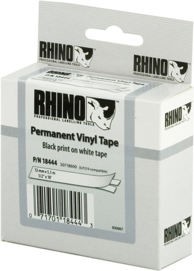 DYMO RhinoPRO, permanent markeringsvinyltape, 12 mm, sort tekst på hvid tape, 5,5 mLæs mere om produktet