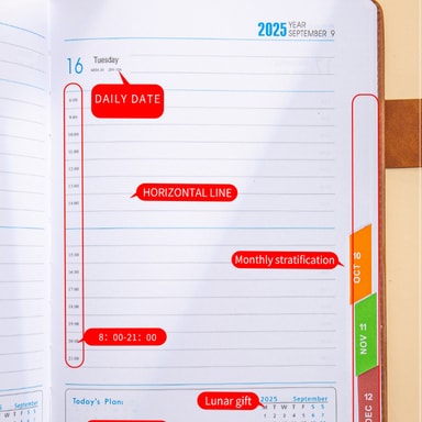 Boost din produktivitet med vores 2025 Planner, en A5 notesbog designet til daglig planlægning. Med 365 daglige sider, månedlige faneblade og et elegant PU-lædercover holder denne planlægger dig organiseret hele året rundt.Læs mere om produktet
