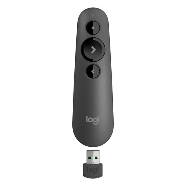 Hold midlet til den perfekte præsentation solidt i hånden. Takket være Logitech R500 præsentationsenhedens tilpasselige tre knapper kan du nemt navigere igennem dine slides. For at holde en solid kontakt med dit publikum lader R500 dig gennemføre præsentationen fra en afstand på op til 20 meter fra receiveren.