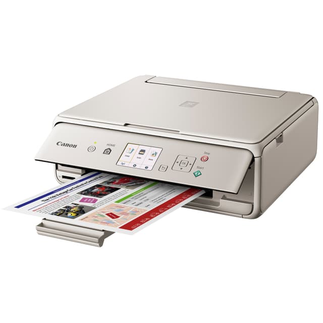 Med denne kompakte Canon Pixma TS5053 AIO inkjet printer kan du udskrive, scanne eller kopiere derhjemme, uden at den tager alt for meget plads. Denne printer anvender bagvendt papirindsætning for hurtig print af dokumenter og billeder.
