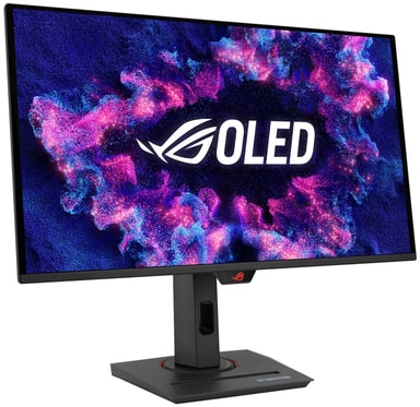 Asus XG27ACDNG 27" skærmen leverer et jævnt billede for intense spilsessioner og kreative opgaver. QD-OLED-panelet giver dig levende farver og kører ved 360 Hz for jævne billeder sammen med OLED Anti-flimmer-teknologi.Læs mere om produktet