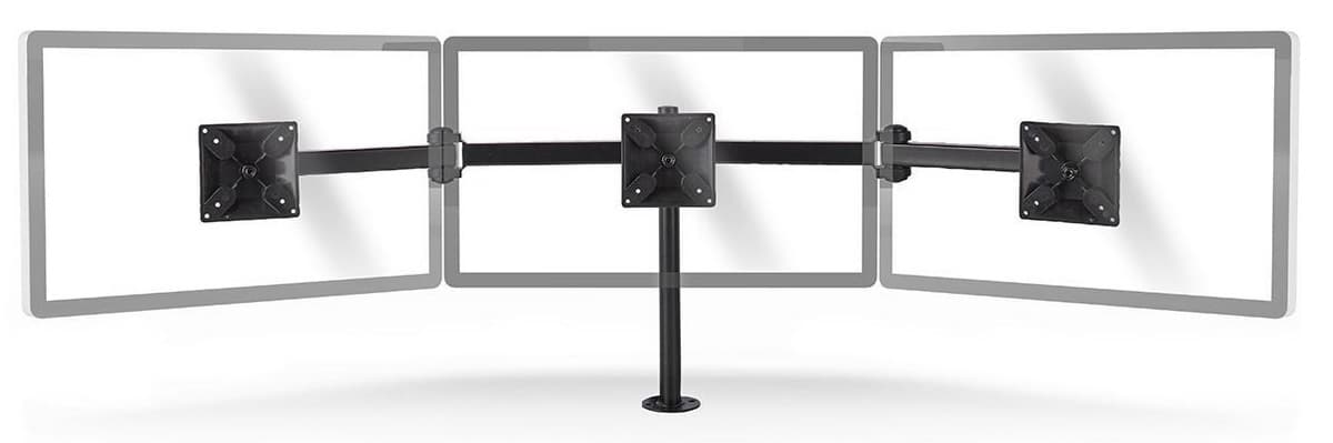 Fuldt bevægeligt Monitorbeslag til bordmontering.  Passer til 3 stk. 14-24""  skærme.  Fremstillet af metal - for styrke og støtte.  Maksimum vægt: 21 kg (3 x 7 kg)  Monteringsklemme - velegnet til skriveborde med en tykkelse ...Læs mere om produktet