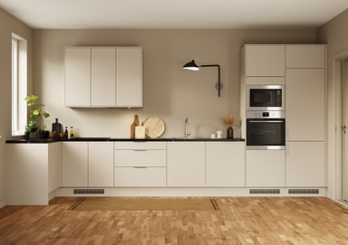Giv dit køkken et strejf af elegance med Epoq Core kabinetlågen. Denne højkvalitets-køkkenserie til en overkommelig pris holder dit køkken funktionelt i årtier. Den grå-beige farvekombination med varme undertoner giver en varm og afslappet atmosfære i ethvert køkken.
