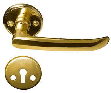 Dørgreb med yderbehandling i messing til indvendige døre. Leveres med massive rosetter, nøgleskilte og skruer til montering. Dørtykkelse: 30-45 mm Dørgrebspind: 8 x 8 x 120 mm