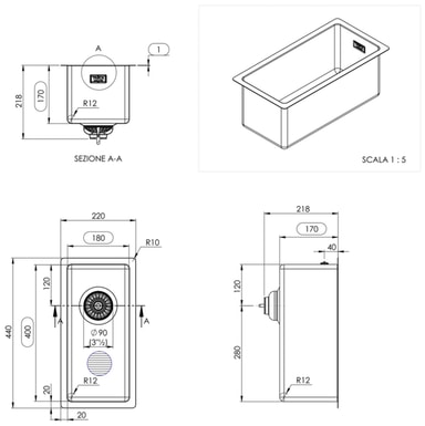 Fratelli Tasca Canova køkkenvask 18 er en mesterligt udformet vask, der kombinerer stilrene linjer med materialer af høj kvalitet, hvilket gør den perfekt egnet til ethvert moderne køkken. Overfladen er behandlet med en PVD - en teknologi med tynd filmmetalbelægning, der øger vaskens resistens og holdbarhed og sikrer, at den tjener dig pålideligt i mange år fremover. Den har derudover en integreret affaldsventil, der sikrer nem vedligeholdelse og rengøring. Vasken passer til 30 cm eller bredere skabe og har en 12 mm indvendig hjørneradius. Velegnet til montering under-, indbygget eller sænket i et køkkenbord.