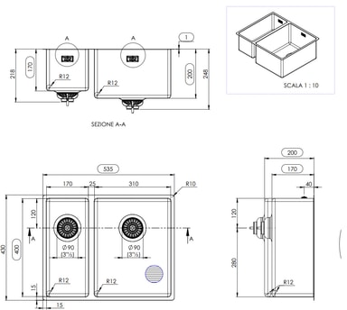 Fratelli Tasca Canova køkkenvask 54 er en mesterligt udformet vask, der kombinerer stilrene linjer med materialer af høj kvalitet, hvilket gør den perfekt egnet til ethvert moderne køkken. Overfladen er behandlet med en PVD - en teknologi med tynd filmmetalbelægning, der øger vaskens resistens og holdbarhed og sikrer, at den tjener dig pålideligt i mange år fremover. Den har derudover en integreret affaldsventil, der sikrer nem vedligeholdelse og rengøring. Vasken passer til 60 cm eller bredere skabe og har en 12 mm indvendig hjørneradius. Velegnet til montering under-, indbygget eller sænket i et køkkenbord.