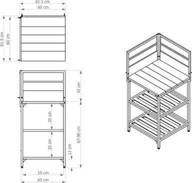 - Inkluderer muligheder for ophængsløsninger med to hyldeplader og en bagplade