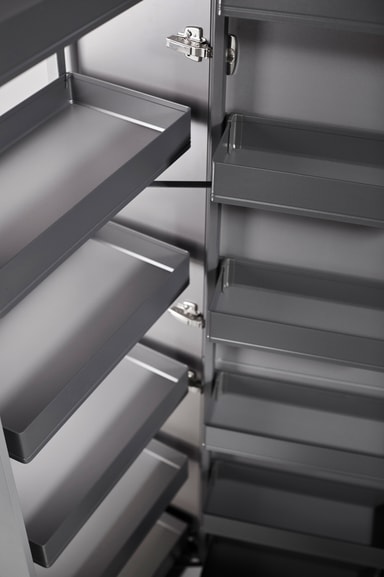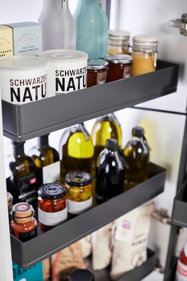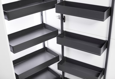 Med denne Epoq Tandem Arena Pure 50 udtræksopbevaring bliver dit køkken smukt både udenpå og indeni. Hyldemøblet har højdejusterbare bakker, som ruller ud, når døren åbnes. På denne måde får du et godt overblik over dine ting. Maks. kapaciteten for bakkerne er 80 kg.Denne smarte udtræksløsning bevæger sig med lethed, så du kan åbne den med en hånd, selvom den er fyldt med varer. Den er kompatibel med E12025019572.