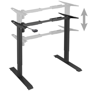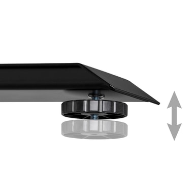 Dette hæve sænke stel er udstyret med højdejusterbare plastikfødder, der gør det muligt at tilpasse til ujævne overflader og kompensere for højdeforskelle op til 1,5 cm. Dette sikrer en stabil og sikker hæve sænke stel uanset underlaget.