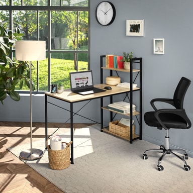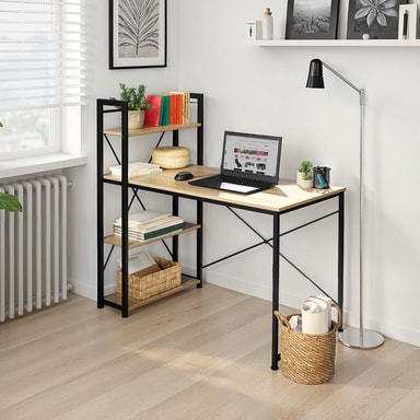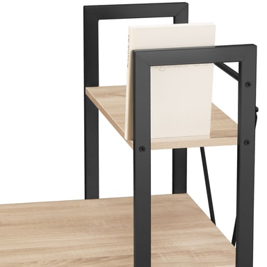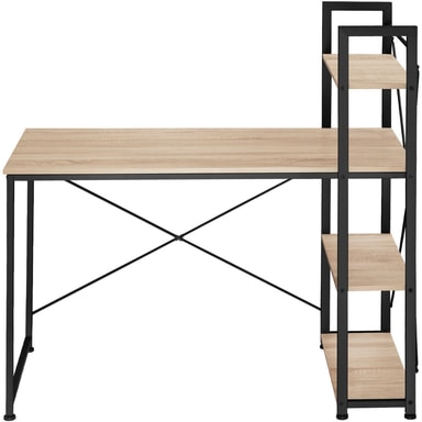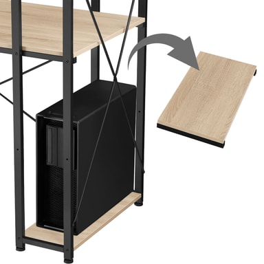 Hylderne på dette skrivebord er ideelle til opbevaring af filer, mapper, bøger, computere eller andre elektroniske enheder. Disse hylder gør det nemt at holde dit skrivebord organiseret og ryddeligt, hvilket er essentielt for en produktiv arbejdsdag. På trods af sin åbne konstruktion imponerer skrivebordet med sin stærke spændstighed og høje stabilitet, hvilket gør det til en pålidelig base for selv de mest krævende opgaver.