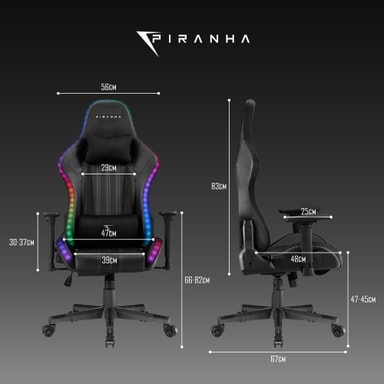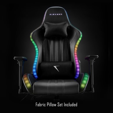 Piranha Attack v3 RGB gamingstolen er et sofistikeret tilføjelse til enhver gaming-opstilling, der kombinerer avanceret funktionalitet med et stilfuldt design. Den har premium stofpuder og sidepaneler for øget komfort og åndbarhed, så du forbliver fokuseret under intens gameplay. Stolens levende RGB-belysning, komplet med et oplyst logo på nakkestøtten, kan tilpasses ved hjælp af en medfølgende fjernbetjening, så du kan personliggøre dit gaming-miljø.