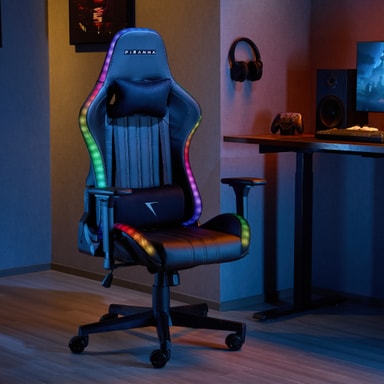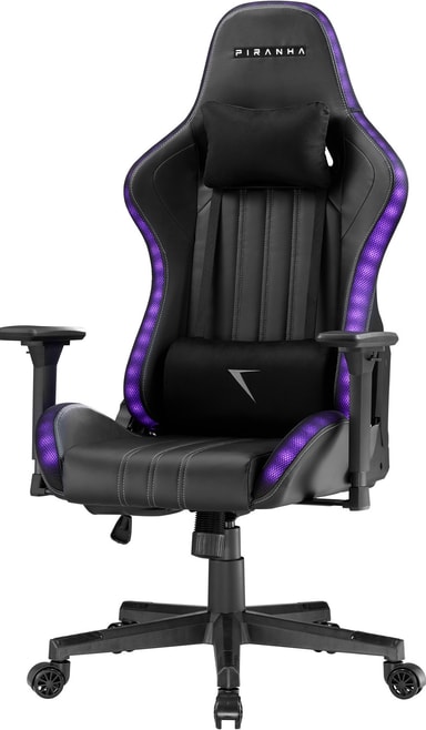 Piranha Attack v3 RGB gamingstolen kombinerer elegant design med ydeevne. Den har levende RGB-belysning, puder i premiumkvalitet, 2D-justerbare armlæn og en 135° butterfly-vippemekanisme for optimal komfort og stil.Læs mere om produktet