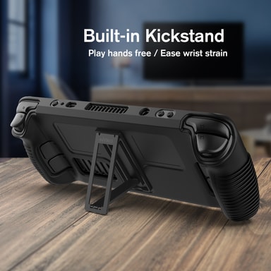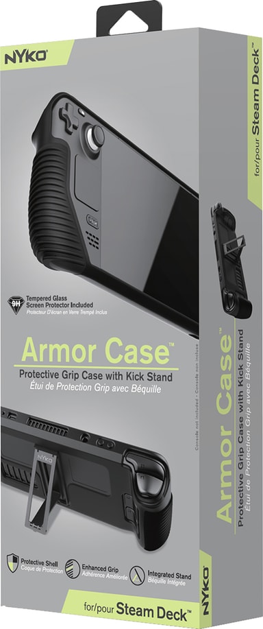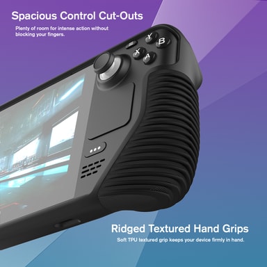 Det Nyko Steam Deck etui til spillekonsol leverer beskyttelse mod fald og stød samt ekstra greb til en god spiloplevelse. Den teksturerede overflade har et stilfuldt design med præcis pasform, uhindret adgang til knapper og porte samt strategisk placerede ventilationsåbninger for god luftgennemstrømning. Desuden har det rejseklare etui en kickstand for ekstra komfort.