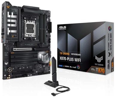 The ASUS TUF GAMING B850-PLUS WIFI is an ATX motherboard built for AMD Ryzen™ 7000, 8000, and 9000 series processors on the AM5 socket. It delivers strong performance with a 14+2+1 (80A) power stage design and support for high-speed DDR5 memory up to 8000+ MT/s (OC).