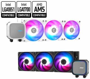 MAG CORELIQUID A13 360 CPU-vandkøleren køler din processor med tre 120mm ARGB-blæsere og aluminiumsradiatorer. PWM-understøttelse sikrer præcis blæserstyring. Kompatibel med AM4, AM5, LGA1851 og LGA1700, hvilket gør den ideel til højtydende pc'er.Læs mere om produktet